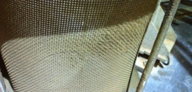 筛分的问题:选用卧式气流筛筛分的时候,一般会选择不锈钢筛网,但是气流筛的工作原理是960转-1100转/分钟高速旋转产生离心力和旋风推进力,从而迫使物料喷射过网,过网的物料有成品细料口排除,不能过网德物料特别是纤维状东西会常时间由于静电而粘附在筛网上面,一方面影响物料的过网率,从而增加设备和筛网的负重,有由于物料的磨琢性大,所以筛网会在3-4天内出现烂网现象;