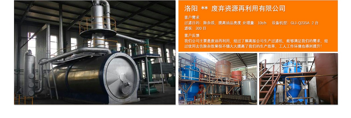 废油再生解决方案 废油是指已经使用过的、全部或部分由矿物油或合成油、油罐内残余物、油和水的混合物以及乳浊液组成的半固体或液状物体。废油再生利用对节约资源、环境保护具有重要意义。高服公司研发的自动排渣过滤机系列,凭借其对传统过滤机的改进和国际新技术的应用,近几年在废油再生领域的重要性逐年上升。