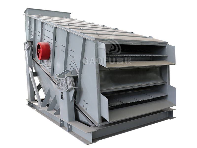 筛箱依靠两台相同的振动电机或普通电机带激振器驱动做相反方向自同步旋转,使支承在减振器上的整个筛机做直线振动,物料从入料端落入筛后,迅速前进、松散、透筛、完成筛分作业。
